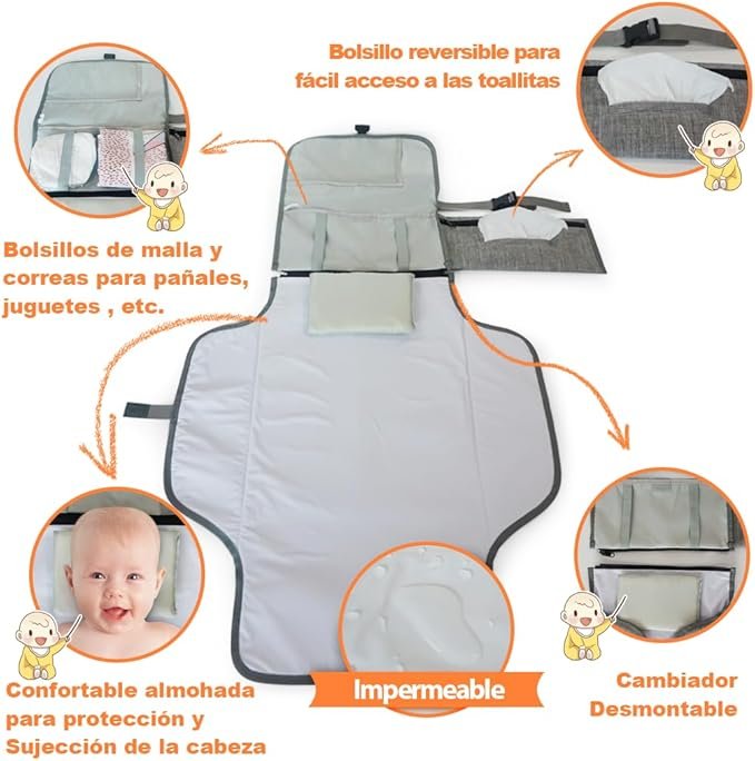 - CAMBIADOR PORTATIL: Cambiador portátil bebe, plegable para cambiar el pañal al bebé en cualquier lugar. Cambiador bebe plegable, ligero y cómodo para transportar.