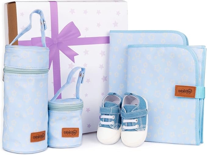 SET DE REGALOS PARA EL BEBÉ- Diseño exclusivo de estrellas en tono azul o rosa